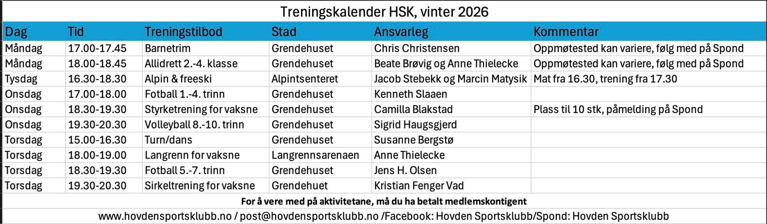 Treningsklaender HSK MERK! For oppdatert informasjon (for eksempel endring av sted eller kanseleringer) se Spond (kode: JDGTK).